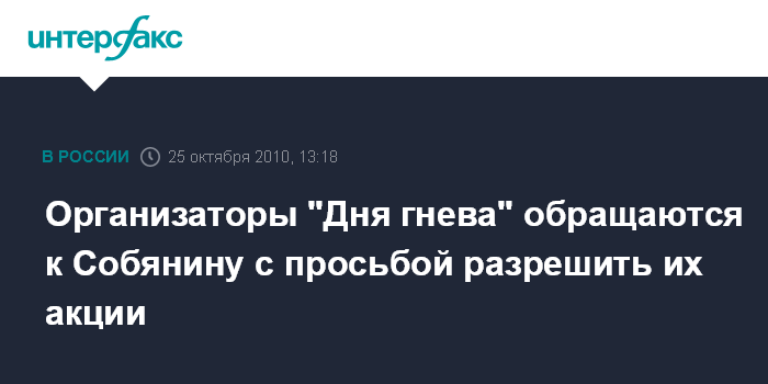 Организаторы "Дня гнева" обращаются к Собянину с просьбой разрешить их акции