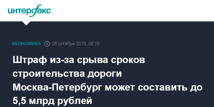 Штраф из-за срыва сроков строительства дороги Москва-Петербург может составить до 5,5 млрд рублей