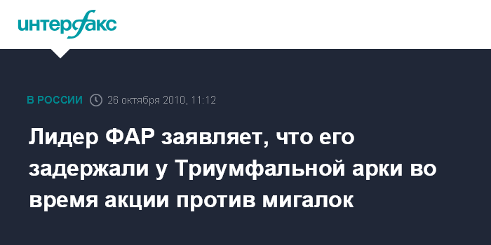 Лидер ФАР заявляет, что его задержали у Триумфальной арки во время акции против мигалок