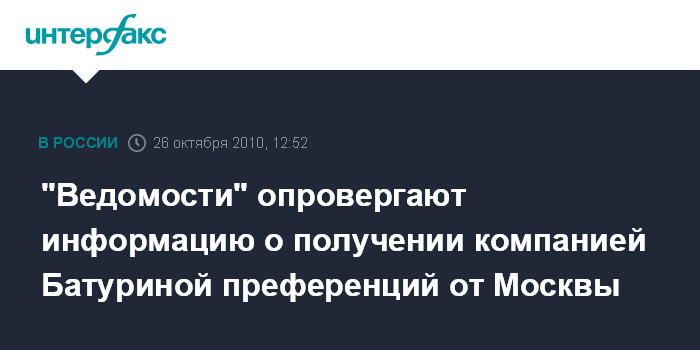 "Ведомости" опровергают информацию о получении компанией Батуриной преференций от Москвы
