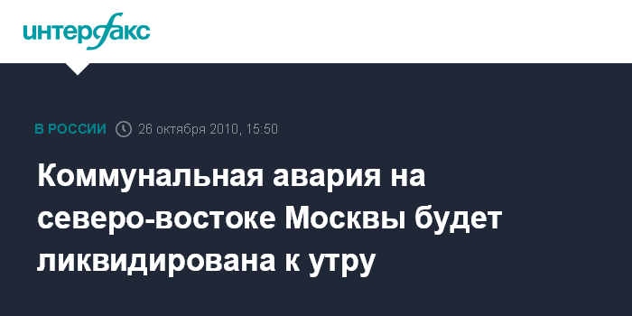 Коммунальная авария на северо-востоке Москвы будет ликвидирована к утру