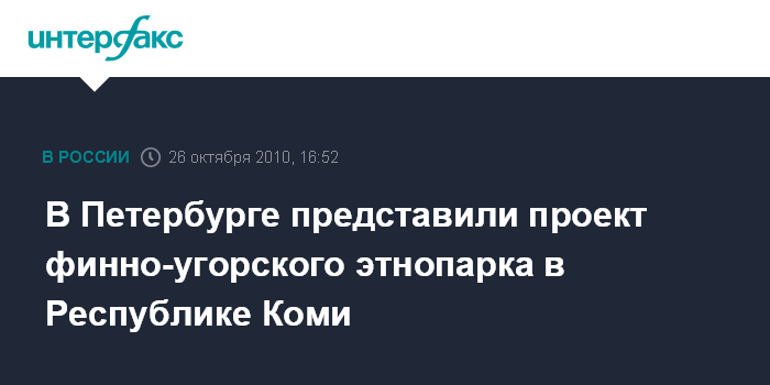 Москва. 26 октября. INTERFAX.RU - В Санкт-Петербурге прошла презентация проекта финно-угорского этнопарка, который планируется создать в Республике Коми.