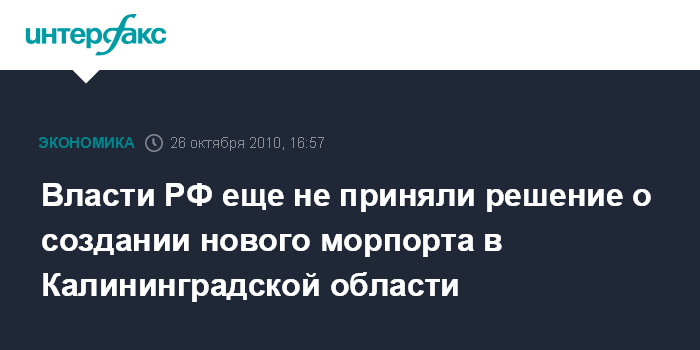 Санкт-Петербург. 26 октября. INTERFAX.RU - Власти РФ пока не приняли окончательное решение по проекту создания глубоководного морского порта на полуострове Бальга в Калининградской области, сообщил журналистам генеральный директор ФГУП "Росморпорт" Игорь Руссу в Петербурге во вторник.