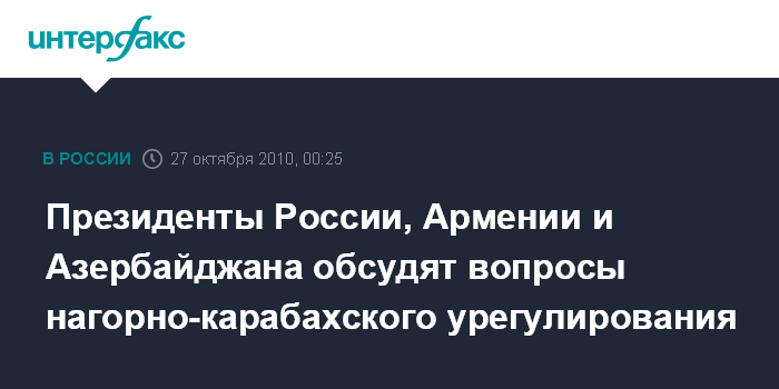 Президенты России, Армении и Азербайджана обсудят вопросы нагорно-карабахского урегулирования
