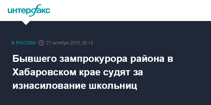 Хабаровск. 27 октября.INTERFAX.RU - Хабаровский краевой суд приступил к рассмотрению уголовного дела в отношении бывшего заместителя прокурора Нанайского района Виктора Басова, обвиняемого в изнасиловании трех школьниц.