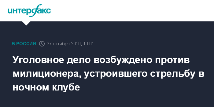 Уголовное дело возбуждено против милиционера, устроившего стрельбу в ночном клубе