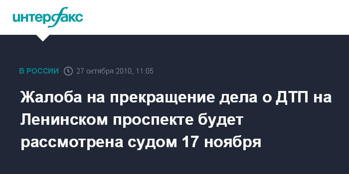 Жалоба на прекращение дела о ДТП на Ленинском проспекте будет рассмотрена судом 17 ноября