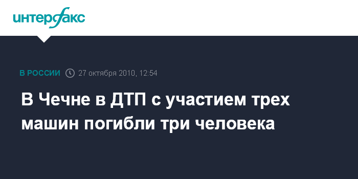 В Чечне в ДТП с участием трех машин погибли три человека
