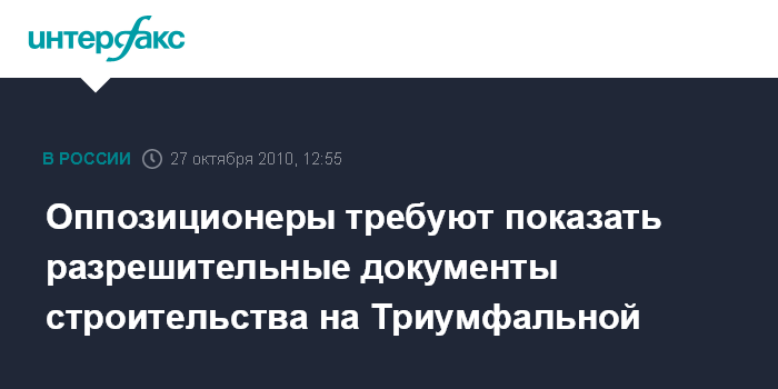 Москва. 27 октября. INTERFAX.RU - Активисты оппозиции требуют предоставить документы, разрешающие стройку на Триумфальной площади Москвы.