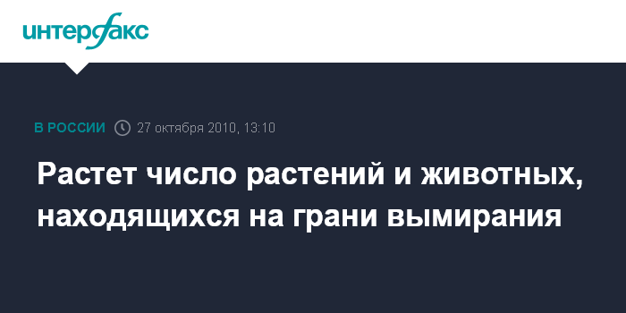 Лондон. 27 октября. INTERFAX.RU - Одна пятая видов животных и растений находятся под угрозой исчезновения, передает в среду британская телерадиокорпорация BBC.
