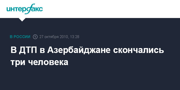 Баку. 27 октября. INTERFAX.RU - Дорожно-транспортное происшествие в Губинскомом районе Азербайджана привело к гибели троих и ранению двух человек, сообщили агентству "Интерфакс" в Главном управлении Государственной дорожной полиции МВД.
