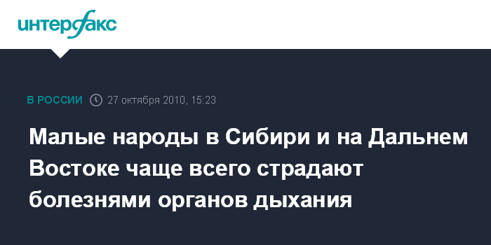 Малые народы в Сибири и на Дальнем Востоке чаще всего страдают болезнями органов дыхания