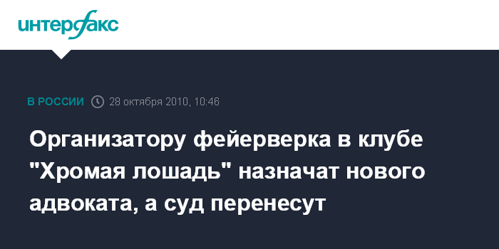 Организатору фейерверка в клубе "Хромая лошадь" назначат нового адвоката, а суд перенесут