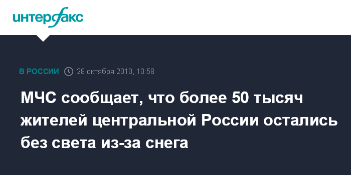 МЧС сообщает, что более 50 тысяч жителей центральной России остались без света из-за снега