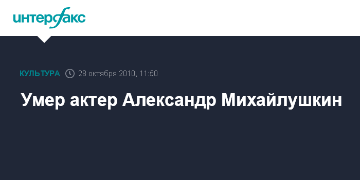 Москва. 28 октября. INTERFAX.RU - На 68-м году жизни скончался народный артист России, актер Центрального театра Российской армии Александр Михайлушкин, сообщили в театре.
