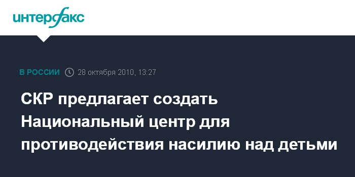 Москва. 28 октября. INTERFAX.RU - Следственный комитет РФ направил в администрацию президента России предложения о создании Национального центра по проблемам пропавших и эксплуатируемых детей.