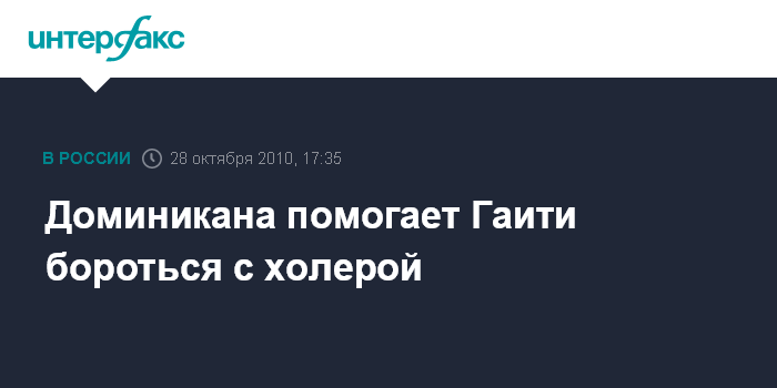 Москва. 28 октября. INTERFAX.RU - Власти Доминиканской Республики активно борются с эпидемией холеры в соседней Гаити, сообщила агентству директор представительства в России и странах СНГ Министерства туризма Доминиканы Галина Лысенко.