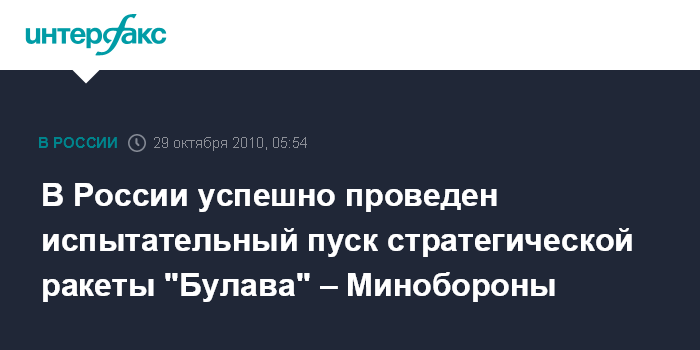 Это был 14-й по счету испытательный пуск "Булавы". 13-й пуск ракеты, который состоялся 7 октября, также был успешным. По неофициальным данным, из предыдущих12-ти испытательных пусков только пять считались успешными или частично успешными.
