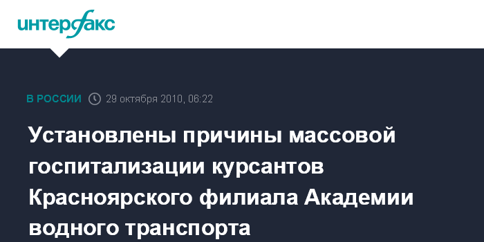 Установлены причины массовой госпитализации курсантов Красноярского филиала Академии водного транспорта