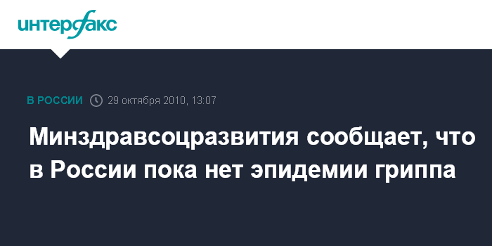 Минздравсоцразвития сообщает, что в России пока нет эпидемии гриппа