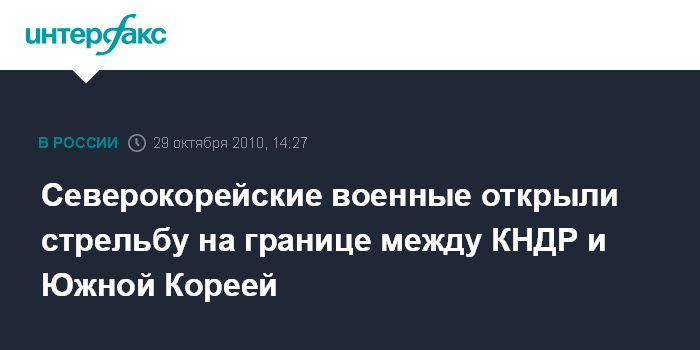 Сеул/Лондон. 29 октября. INTERFAX.RU - Северокорейские военнослужащие, размещенные на демаркационной линии, разделяющей КНДР и Южную Корею, впервые за несколько лет открыли огонь в сторону южнокорейской территории, сообщают в пятницу южнокорейские СМИ.