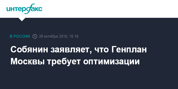 Собянин заявляет, что Генплан Москвы требует оптимизации