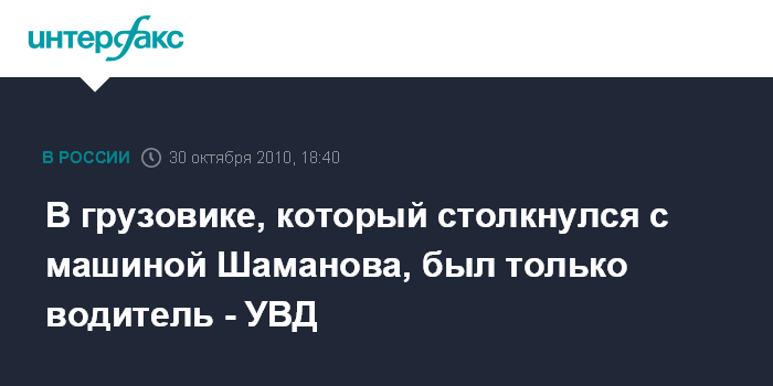 В грузовике, который столкнулся с машиной Шаманова, был только водитель - УВД