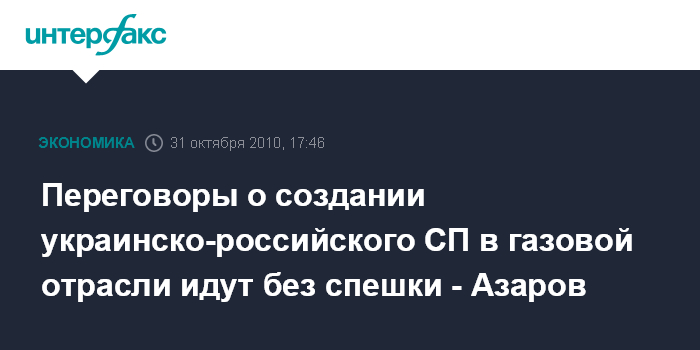 Переговоры о создании украинско-российского СП в газовой отрасли идут без спешки - Азаров