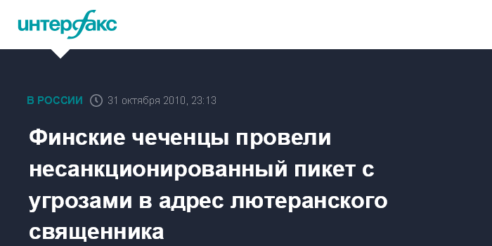 Хельсинки. 31 октября. ИНТЕРФАКС - Проживающие в Финляндии чеченцы провели в воскресенье несанкционированный пикет у здания церкви в городе Расеборг во время вечерней службы, в ходе которого пытались запугать местного священника Юха Молари.