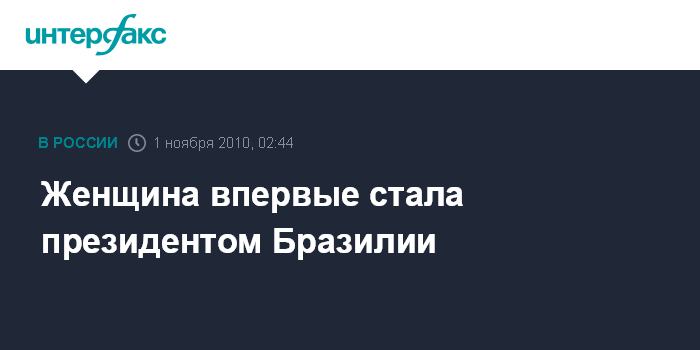 Д.Руссефф, за избрание которой выступал уходящий президент Луиш Инасиу Лула да Силва, стала первой женщиной-президентом Бразилии.