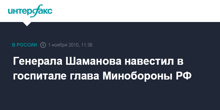 Как сообщили в Управлении пресс-службы и информации Минобороны РФ, глава российского ведомства в субботу навестил Шаманова в Центральном военном клиническом госпитале имени Бурденко.