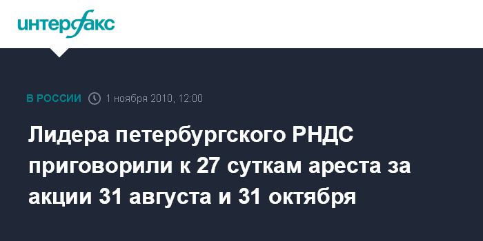 Лидера петербургского РНДС приговорили к 27 суткам ареста за акции 31 августа и 31 октября
