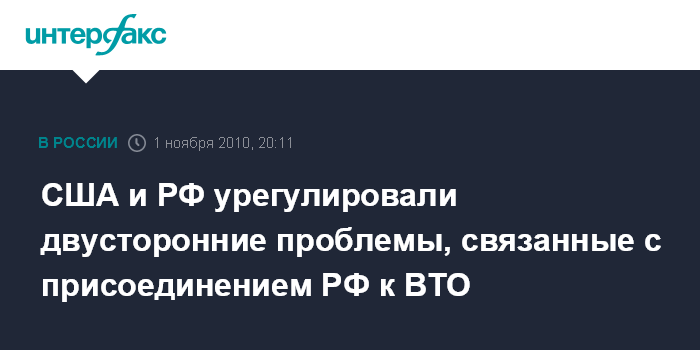 США и РФ урегулировали двусторонние проблемы, связанные с присоединением РФ к ВТО