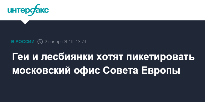 Москва. 2 ноября. INTERFAX.RU - Представители сексуальных меньшинств собираются провести 9 ноября в Москве пикет около офиса Совета Европы.