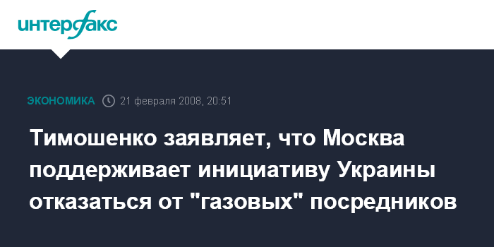 Тимошенко заявляет, что Москва поддерживает инициативу Украины отказаться от "газовых" посредников