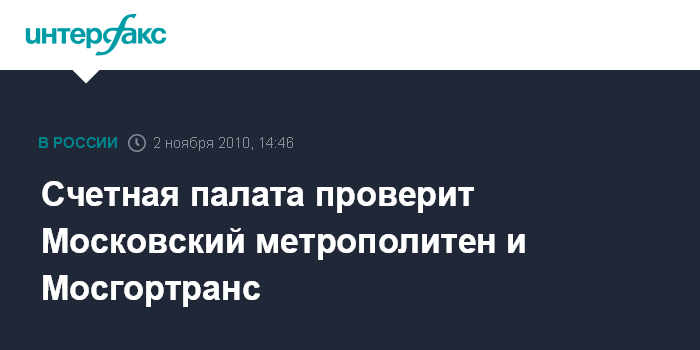 Москва. 2 ноября. INTERFAX.RU - Проверка Счетной палатой РФ деятельности московского метрополитена и Мосгортранса начнется на следующей неделе.