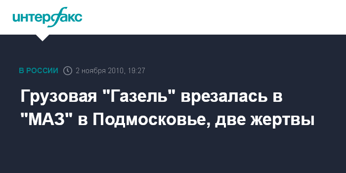 Москва. 2 ноября. INTERFAX.RU - ДТП произошло во вторник в Московской области на Каширском шоссе. В результате столкновения двух грузовых автомобилей погибли два человека.