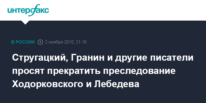 Стругацкий, Гранин и другие писатели просят прекратить преследование Ходорковского и Лебедева