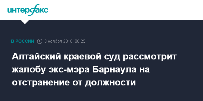 Алтайский краевой суд рассмотрит жалобу экс-мэра Барнаула на отстранение от должности