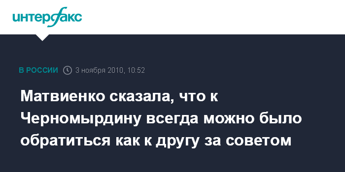 Матвиенко сказала, что к Черномырдину всегда можно было обратиться как к другу за советом