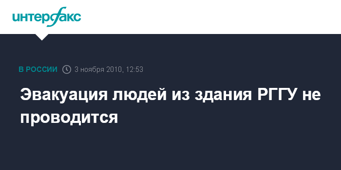 Москва. 3 ноября. INTERFAX.RU - Эвакуации студентов и сотрудников в связи с сообщениями о заложенной в РГГУ бомбе не ведется, сообщил пресс-секретарь РГГУ Дмитрий Соколов.