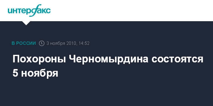Похороны Черномырдина состоятся 5 ноября
