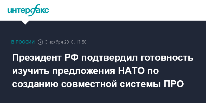 Президент РФ подтвердил готовность изучить предложения НАТО по созданию совместной системы ПРО