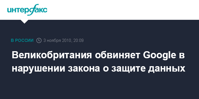 Лондон. 3 ноября. INTERFAX.RU - Американская компания "Гугл" грубо нарушила закон о защите данных Великобритании, собрав персональные данные о британцах в рамках проекта Street View, сообщила в среду британская телерадиокорпорация ВВС со ссылкой на уполномоченного по информации Великобритании Кристофера Грэма.