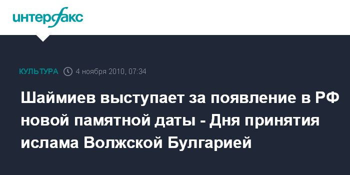 В интервью "Интерфаксу" он напомнил, что в сентябре Госсовет республики принял закон, устанавливающий 21 мая как День официального принятия ислама Волжской Булгарией.