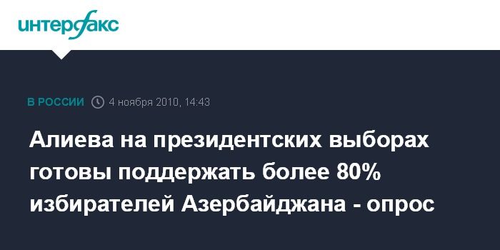 Алиева на президентских выборах готовы поддержать более 80% избирателей Азербайджана - опрос