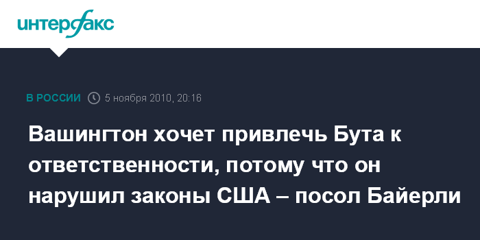 Вашингтон хочет привлечь Бута к ответственности, потому что он нарушил законы США – посол Байерли