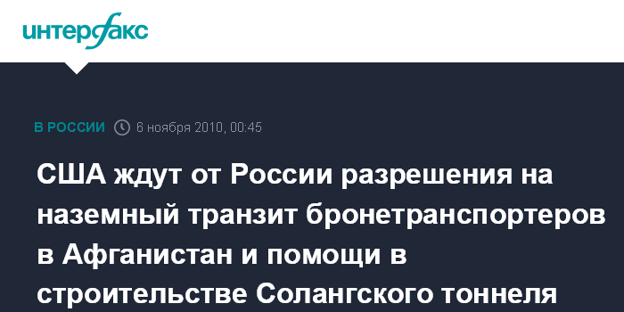 США ждут от России разрешения на наземный транзит бронетранспортеров в Афганистан и помощи в строительстве Солангского тоннеля