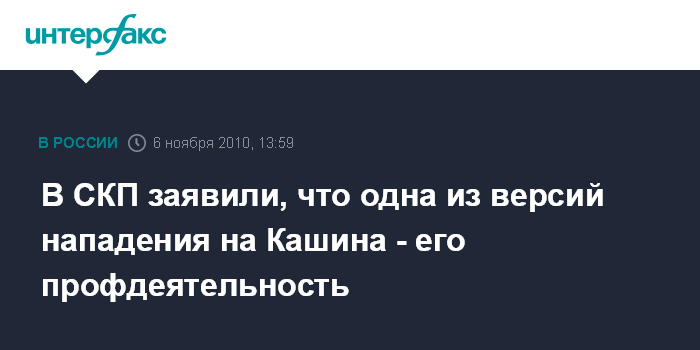 Москва. 6 ноября. INTERFAX.RU - Следствие в качестве одной из версий покушения на журналиста "Коммерсанта" Олега Кашина рассматривает его профессиональную деятельность, сообщает в субботу сайт СКП. "Следствие рассматривает различные версии причин произошедшего, в том числе, профессиональную деятельность Кашина", - говорится в сообщении.