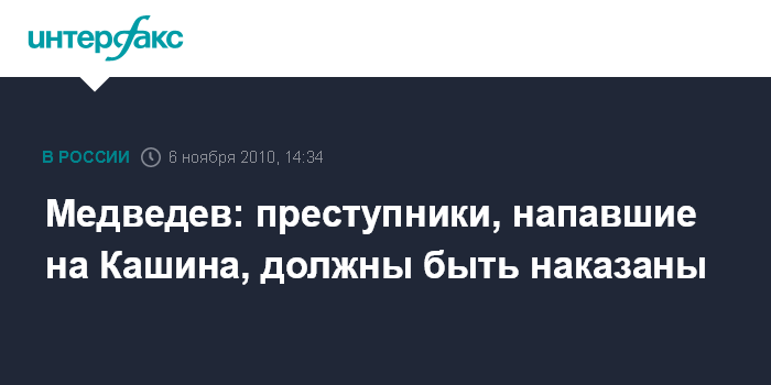 Медведев: преступники, напавшие на Кашина, должны быть наказаны